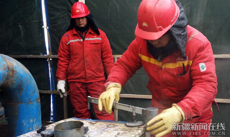 1月23日,采集员正在罐区检测泥浆性能
